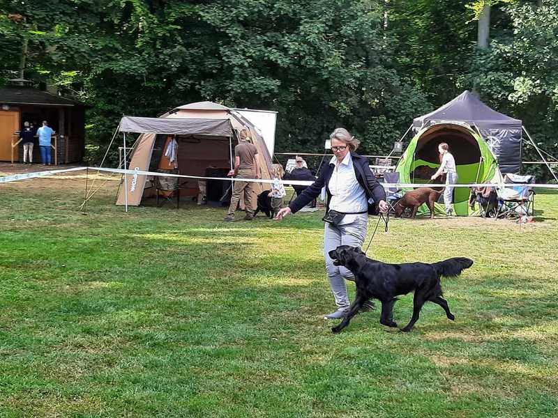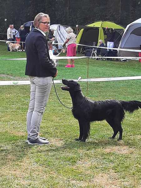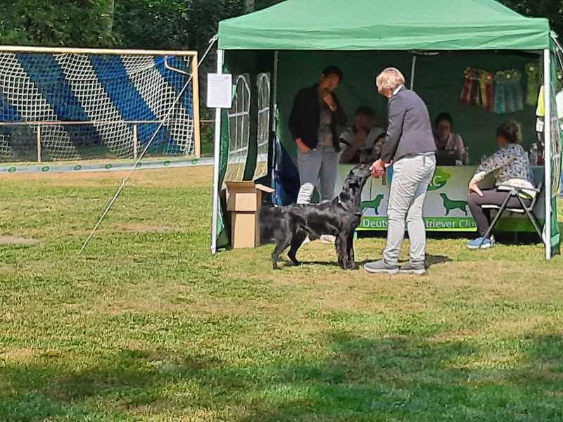 Flatadventure's Done for me - "Dembe" - stammt aus meinem D-Wurf, sie ist eine Tochter aus meiner Bintu und ihr auch sehr, sehr ähnlich, sowohl im Aussehen als auch im Wesen und in der Arbeitsveranlagung. Bisher habe ich viel mit ihr erreicht, einige Prüfungen sind absolviert (taugl. für die spez. jagdl. Leistungszucht), Ausstellungen haben wir besucht und dort auch immer unser "vorzüglich" mit der einen oder anderen Platzierung erhalten.